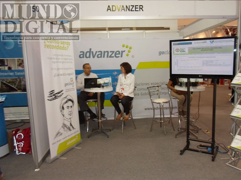 Pantallas de plasma, LCD o LED instaladas sobre la estructura del stand acondicionado para tal fin o sobre bases metálicas ya sea de acero tipo lounge o de metal pintadas en negro